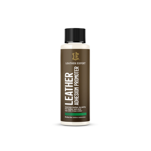 7. Leather Adhesion Promoter – a festék bőrhöz való tapadását javító szer. Használja 5% bőr keresztkötővel. A keveréket 6 órán belül használja fel. A szer hő hatására aktiválódik, ezért az alkalmazás után hajszárító használata szükséges. Vigyen fel 2-3 vékony réteget szivaccsal. A termék aktiválásához melegítsen fel minden réteget a következő felhordása előtt. Az Adhesion Promoter használata után azonnal vigye fel a bőrfestéket.